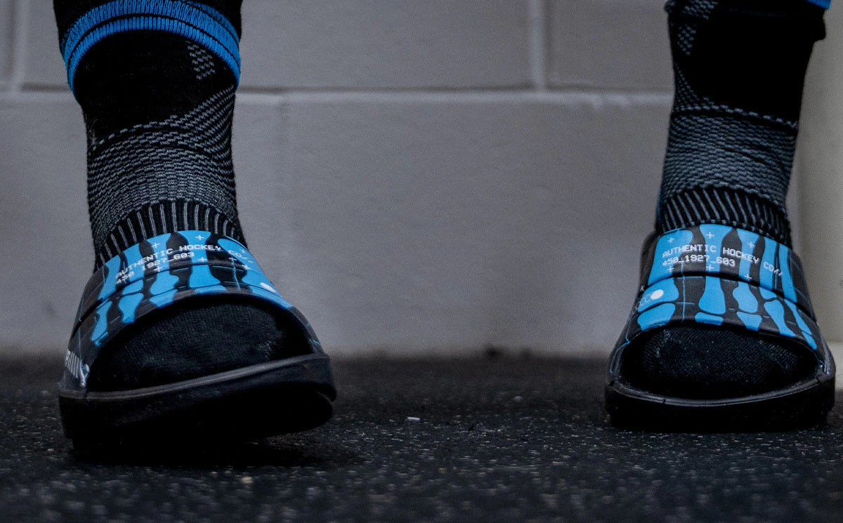 Perfect for sliding on and off between games or training sessions, the NEXT GAME slide collection by Bauer features OOFOS proprietary OOfoam ™ technology, which absorbs impact on a player’s foot, ankle and body. Combined with a patented footbed design, OOFOS cradle the heel and arches for the optimal combination of soft and stable support. OOfoam™ technology is proven to absorb 37% more impact than traditional foam materials, reducing load and stress on joints, ankles and feet, so you can recover faster.