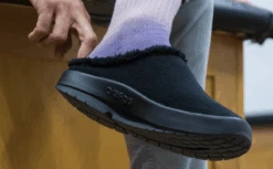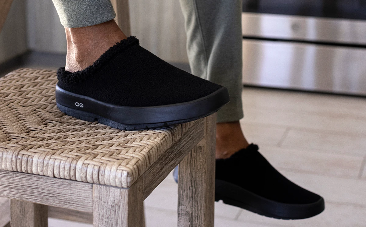 The OOcoozie Mule is the perfect around the house or post-gym option to slide into for stability and relief. Our unique one-of-a-kind OOfoamâ„¢ technology that absorbs impact is matched with a warm vegan sherpa material that is both recyclable and machine washable. Add in the patented footbed design that cradles and supports arches and you’ll recover faster. A versatile hygge style boasting active recovery – get cOOzy.