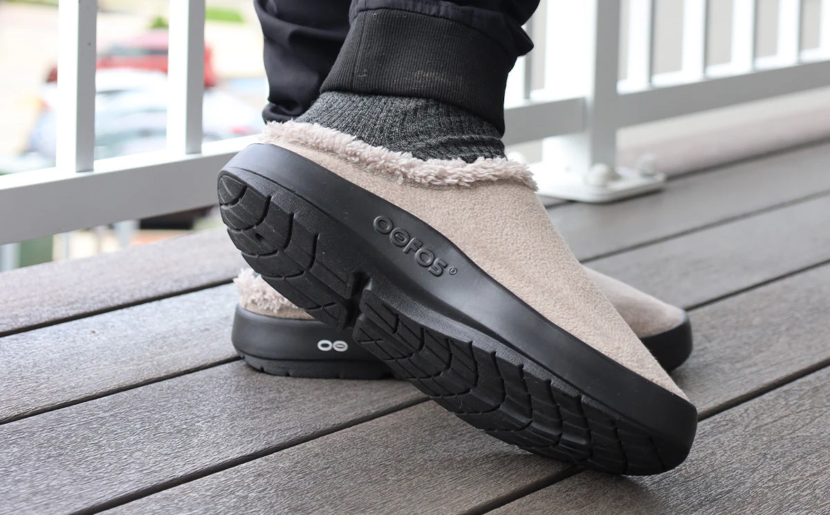 The OOcoozie Mule is the perfect around the house or post-gym option to slide into for stability and relief. Our unique one-of-a-kind OOfoamâ„¢ technology that absorbs impact is matched with a warm vegan sherpa material that is both recyclable and machine washable. Add in the patented footbed design that cradles and supports arches and you’ll recover faster. A versatile hygge style boasting active recovery – get cOOzy.