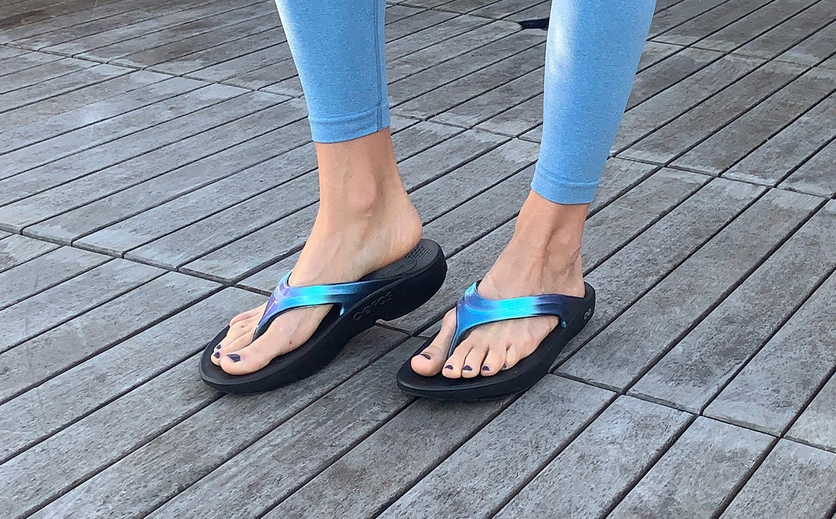 Luxe:Â Colors and shine bring some extra fun and expression to OOFOS’ classically sleek footbed.